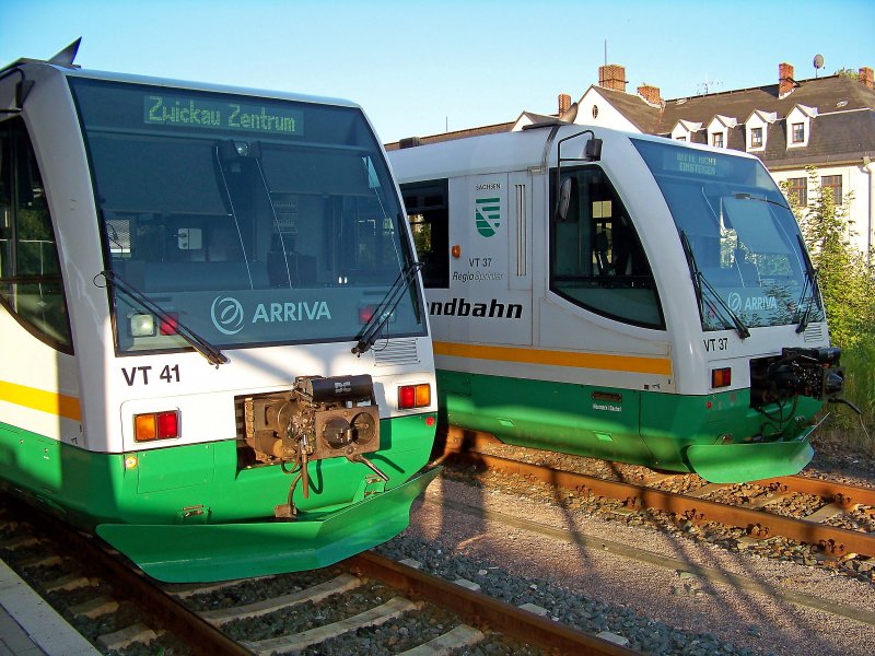 VT41 (95 80 0650 563 9 D-VBG ; vorne) als VBG83130 und VT37 abgestellt in Falkenstein, 15.7.09.