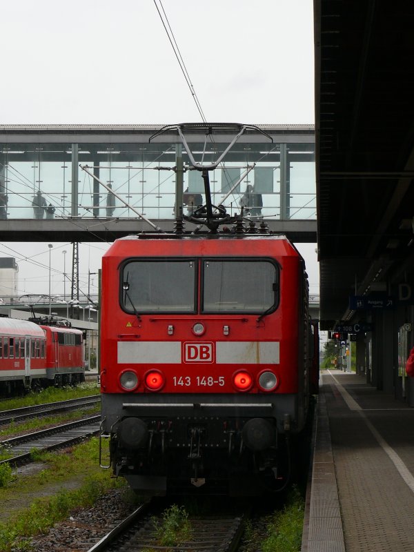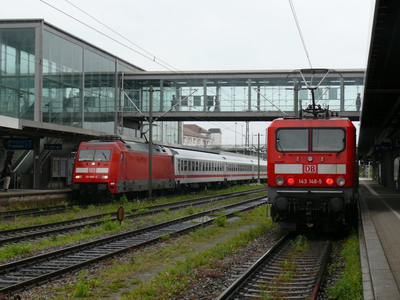 101 060-2 mit IC "Rottaler Land" neben 143 148-5 mit RB nach Eggmühl in Regensburg Hbf bei besch... äh nicht so guten Wetter ;) , 18.05.2009