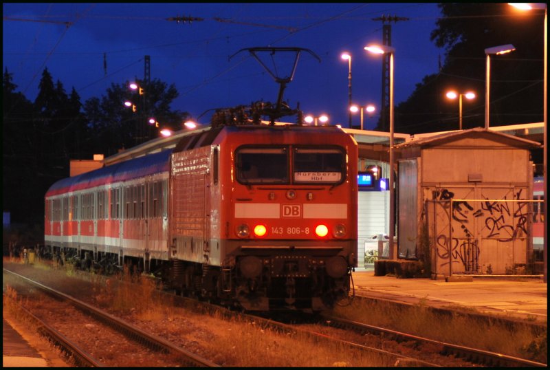 143 806 macht am Abend des 08.07.2009 in Coburg auf den Weg nach Nürnberg