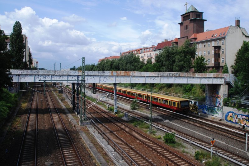 BERLIN, 19.07.2009, S25 nach Hennigsdorf zwischen Gesundbrunnen und Bornholmer Straße