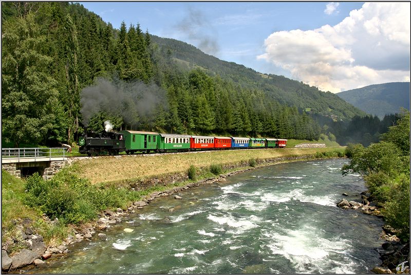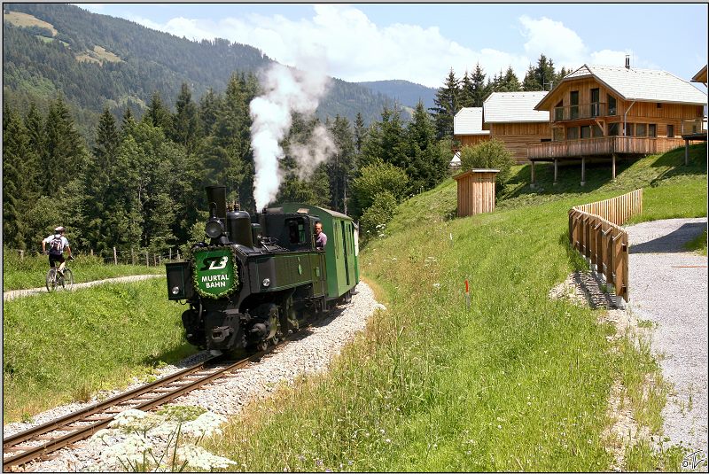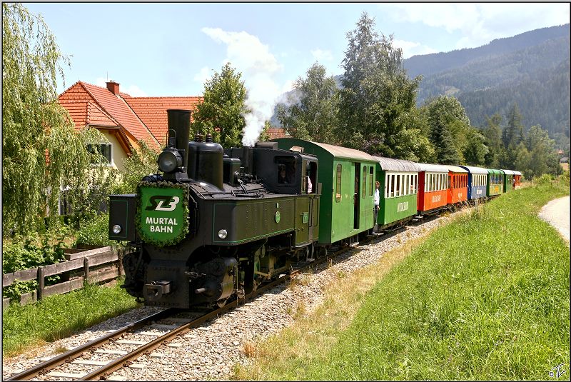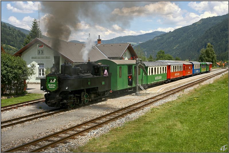 Dampflok BH 1 der STLB fährt mit einem Dampfbummelzug von Murau nach Tamsweg.