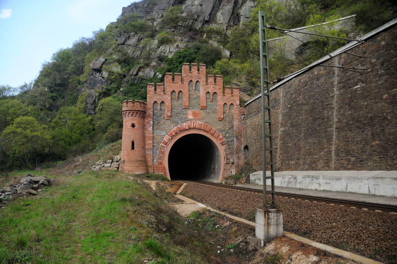 Das südliche Loreley-Tunnelportal. Ein bißchen "Frühsport" und man kann es so auf Chip bannen. Pech für mich, dass an diesem Samstag der Güterverkehr zu wünschen übrig ließ. (April 2009).