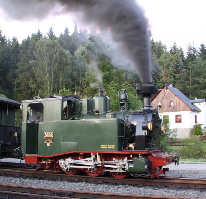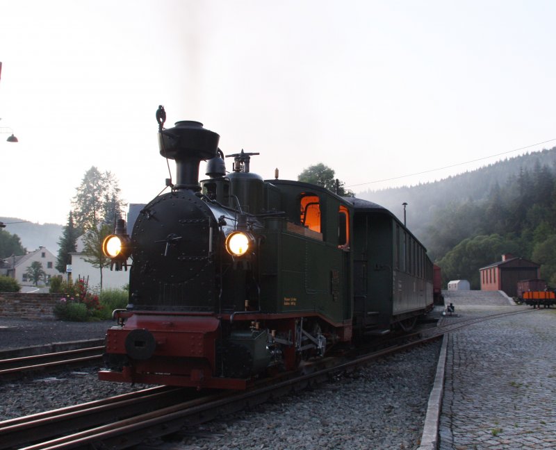 Neubau IK 54 sich am Abend des 15.07.09 gegen 21:35 Uhr im Bahnhof Schmalzgrube kurz vor der Rückfahrt nach Jöhstadt.