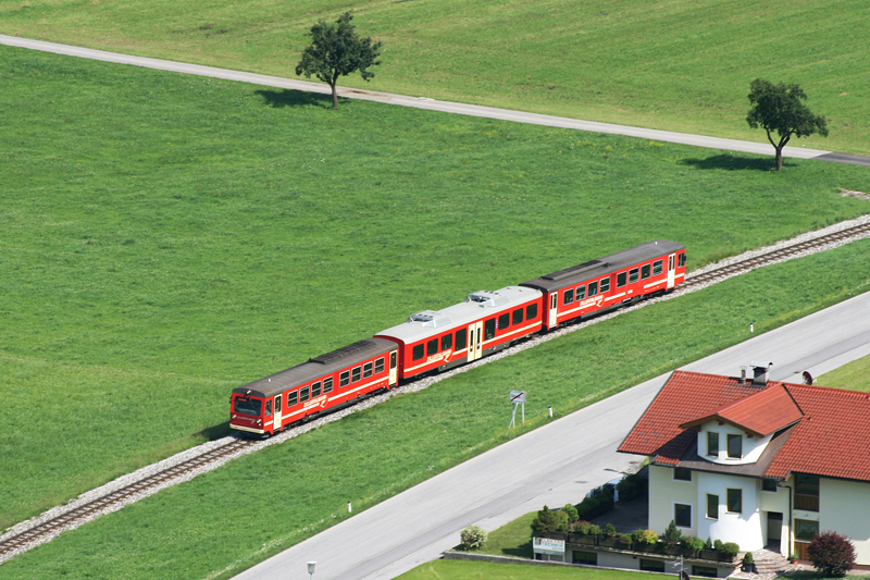 Ein VT der Zillertalbahn am 17.07.2009 in der Nähe von Strass (i.Z.).