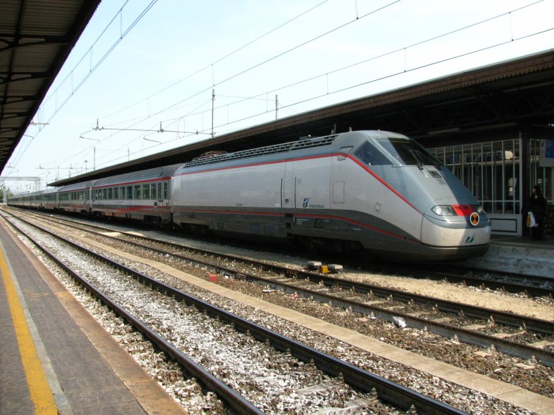 Ein vorgeschmack auf meine Ferien, auch wenn ich nicht mit dem Zug gehe: Ein ETR 500 macht Halt in Verona P.N. am 01.05.2009