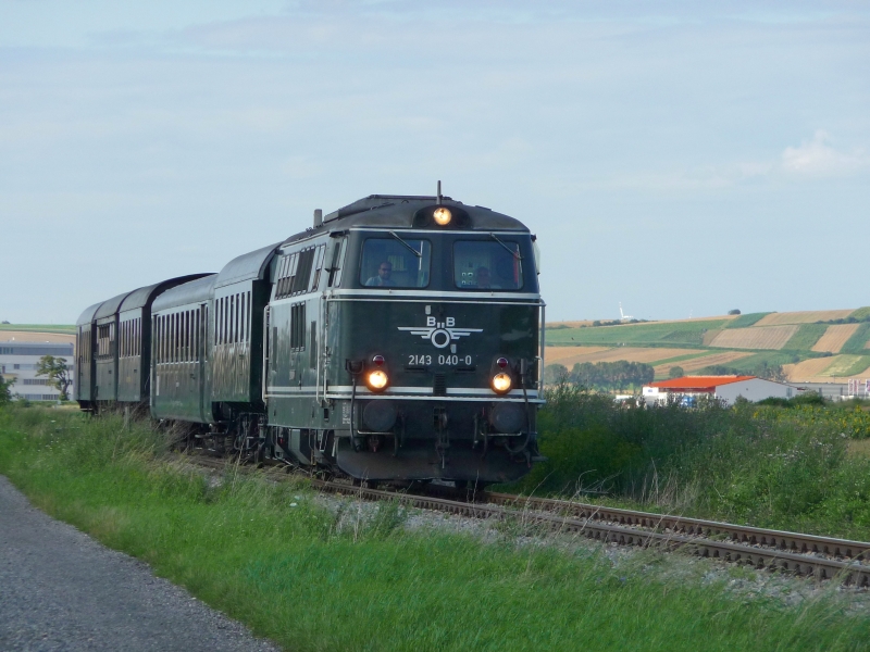 Eine virtuelle Museumslokomotive ist die ÖBB 2143 040-0. Sie war am 18. und 19. Juli 2009 zwischen Korneuburg und Ernstbrunn unterwegs. Am Abend des 19. wurde sie kurz vor Stetten aufgenommen.