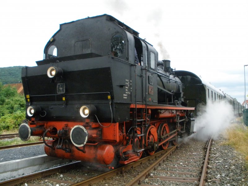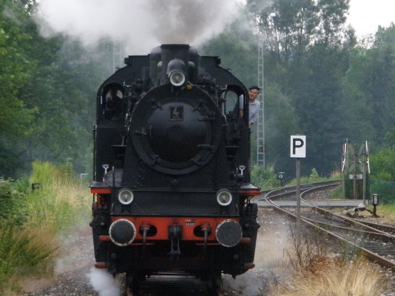 Die Neubau IK 54 kocht am Abend des 15.07.09 gegen 21:30 Uhr, im Bahnhof Schmalzgrube Dampf. So richtig läuft die Lok noch nicht, bis Schlössel fällt der Dampfdruck immer stark ab. Man hat ja keine Lok zum vergleich, und wie die IK so früher lief weiß auch keiner mehr.