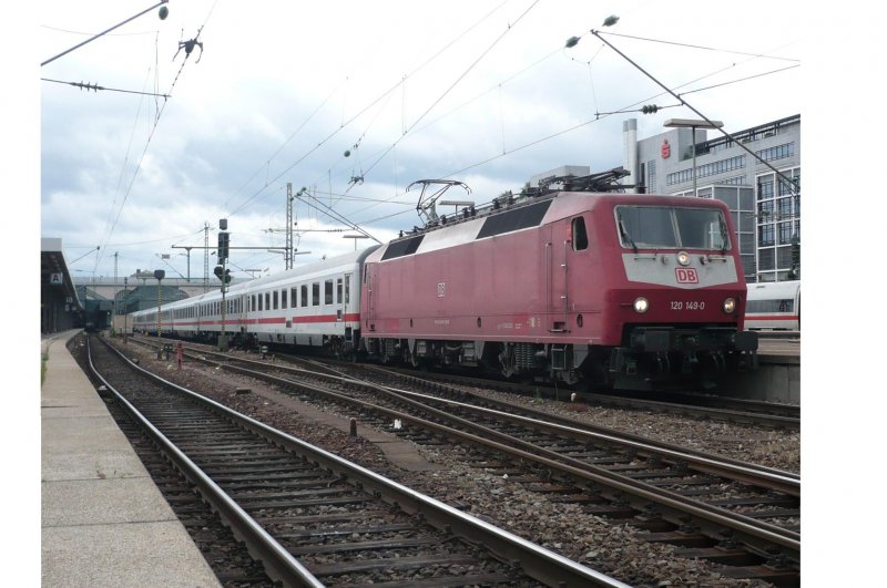Nur noch wenige Minuten, dann wird der von der 120 139-1 geführte Intercity den Hauptbahnhof erreichen. Hier durchfährt der Zug gerade den Bahnhof Köln Messe/Deutz (17.7.2009)