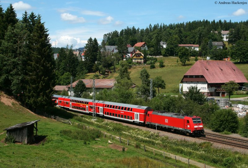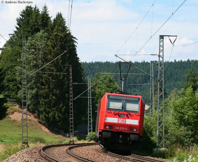 Nachtrag: IRE 4714 (Konstanz-Karlsruhe Hbf) mit Schublok 146 233-2 "Donaueschingen" am km 69,1 5.7.09