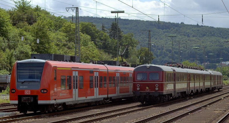 Neu neben alt, links 425 235-9 und rechts 425 420-7 in Mosbach-Neckarelz. 19.07.2009
