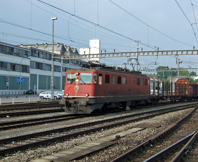 SBB-Cargo: Mit einem "Holzwagen"-Güterzug trifft die Ae 6/6 11426 "Stadt Zürich" in Langenthal ein. (16.7.09)