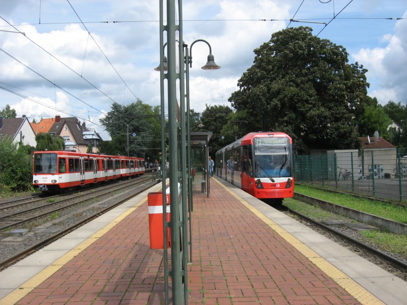 Sonntags fährt die Linie 13 nur in Einfachtraktion. Hier TW 5145 am 19. Juli 2009 in einem der beiden Wendegleise, an der Haltestelle "Vischeringstraße"