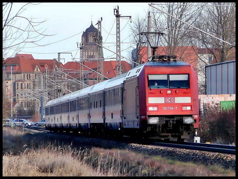 101 114-7 zieht IC2379 nach Frankfurt am Main. Stralsund am 07.02.08