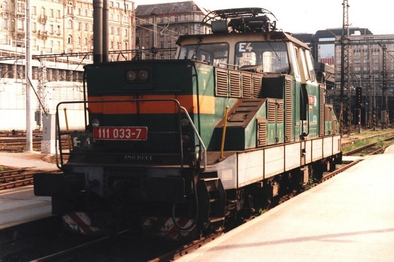 111 033-7 (E458 1033) auf Bahnhof Praha-Hlavni am 5-5-1995. Bild und scan: Date Jan de Vries.
