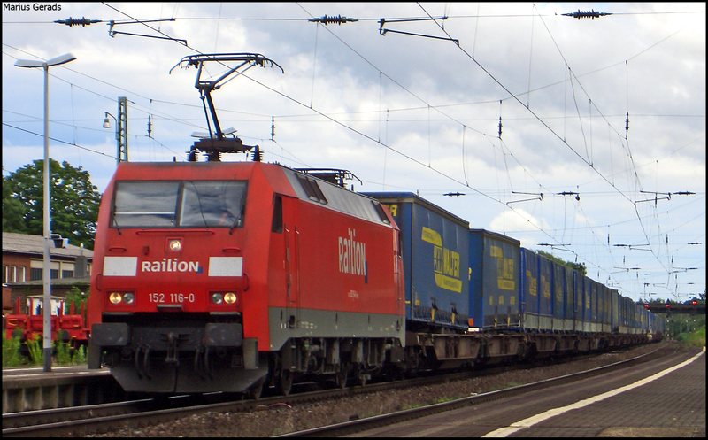 152 116 mit einem Güterzug Richtung Köln bei der Durchfahrt von Bonn-Beuel 19.7.2009