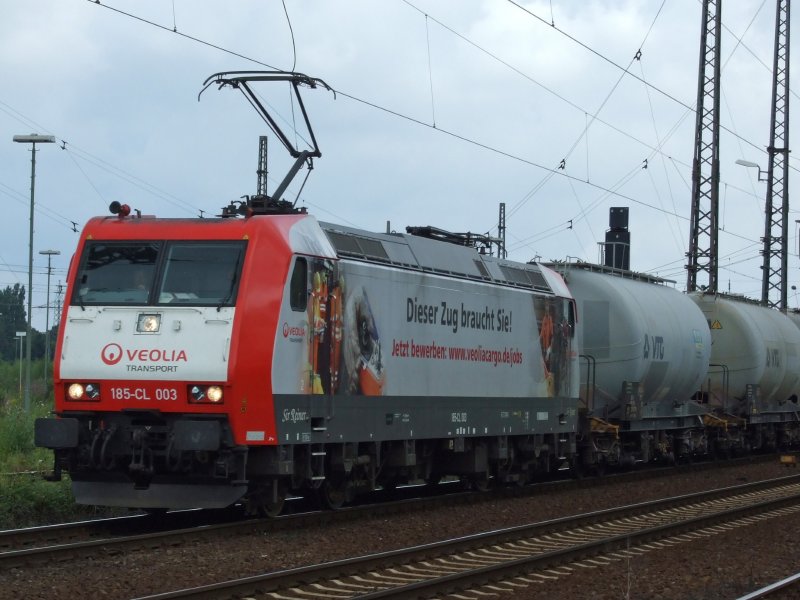 Völlig verschandelt zieht 185 552 der MRCE am 04.07.09 einen Kesselwagenzug durch Bitterfeld. Sie wurde später in Großkorbetha gesichtet.