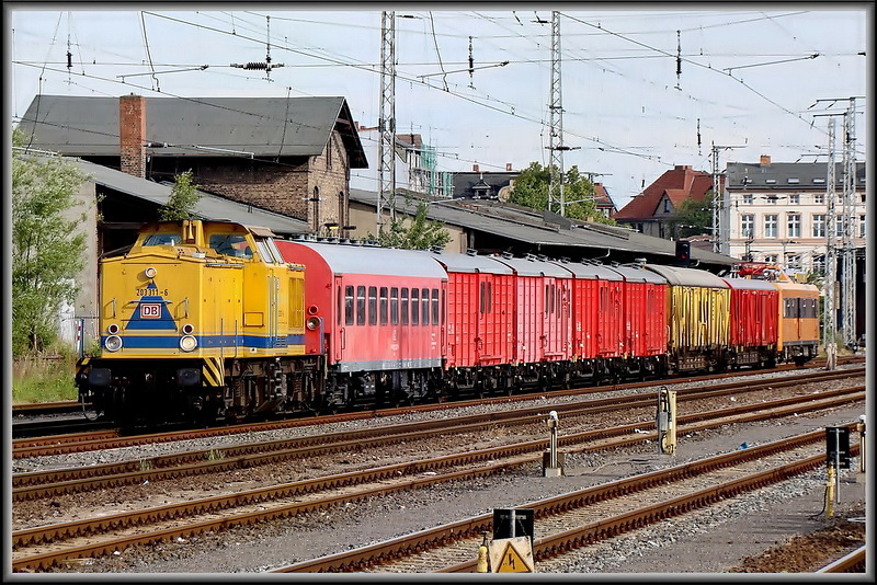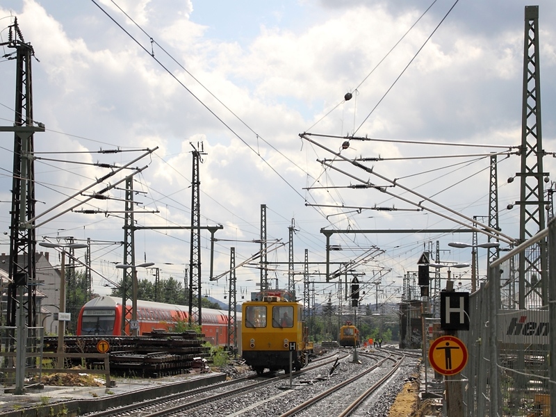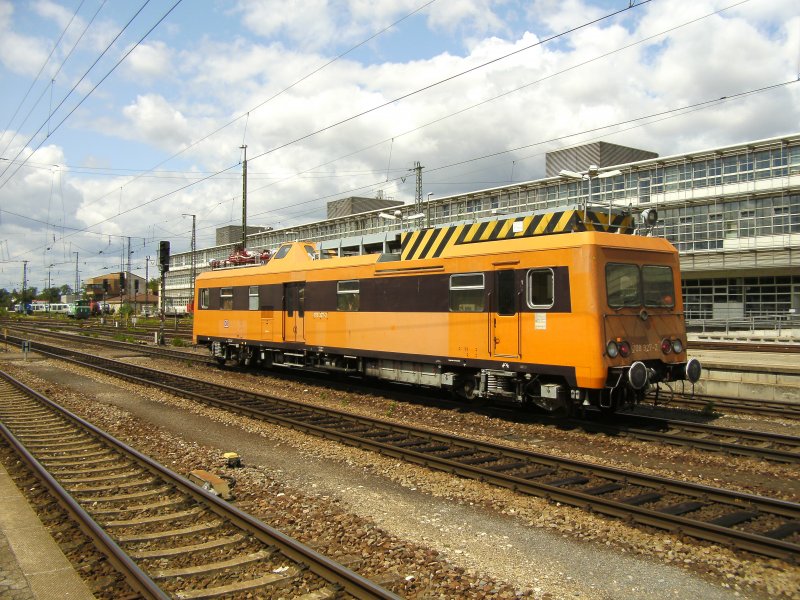 Hier fährt gerade ein Oberleitungsmessfahrzeug von Regensburg Prüfening kommen durch den Regensburger Hbf. (25.07.2009, Rgb Hbf)