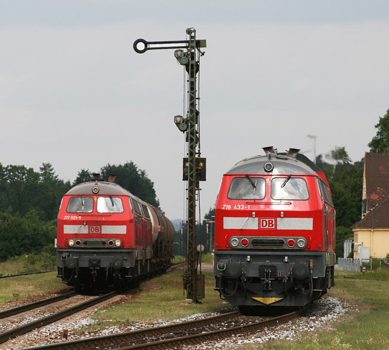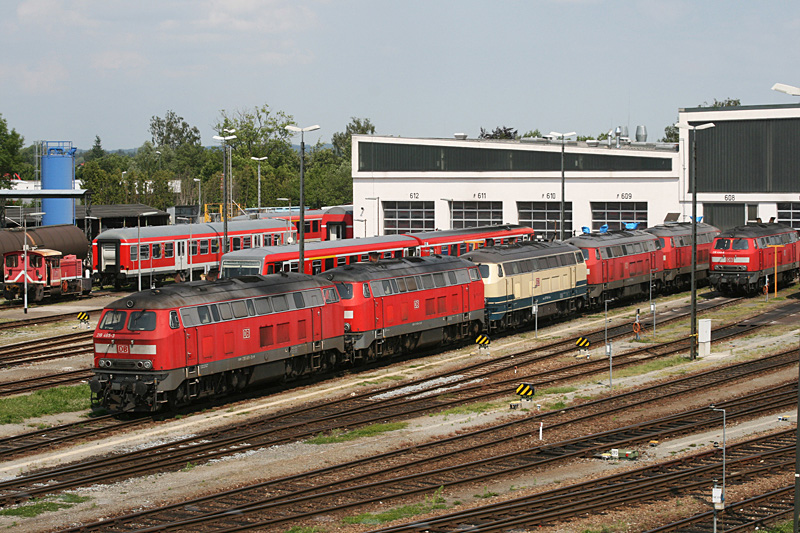 BW Mühldorf am 04.06.2009: Vorne ist 218 465 zu sehen, dritte Lok in der Reihe ist die 217 014 in ob.