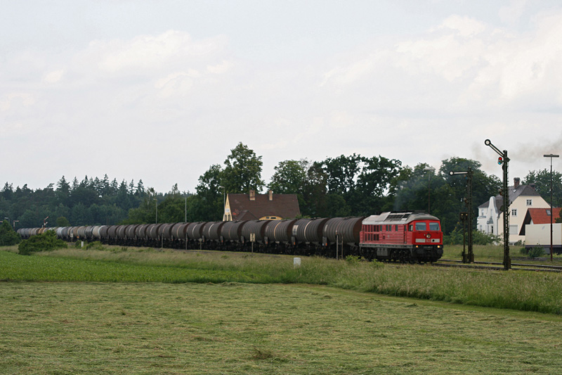 DLC 6302 passiert mit ihrem Kohlenstaubzug den Haltepunkt des Ortes Marquardt (15.07.09)