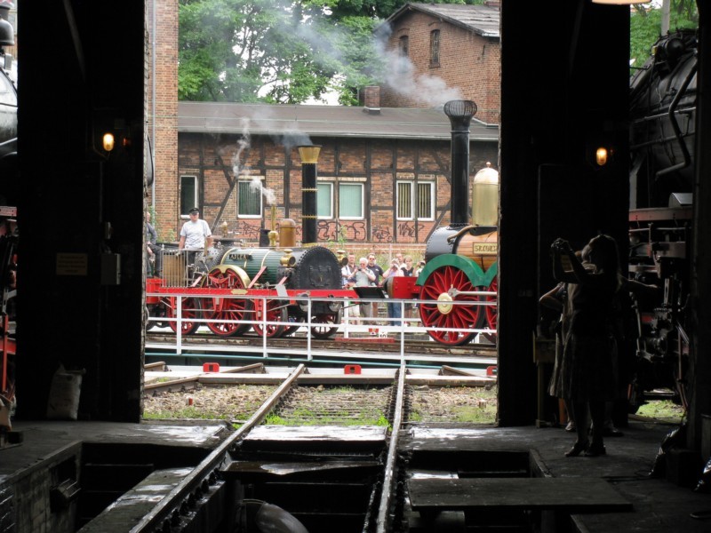 Auf der Drehscheibe des ex. Bw Halle P sind die "ADLER" und die "SAXONIA" zu sehen 06.07.2008
