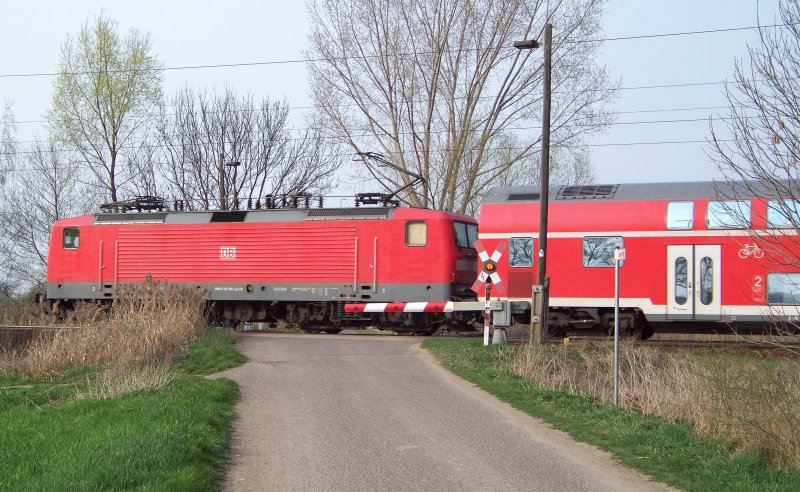 "Bald schon wieder Geschichte"! Dieses Foto wird bald schon wieder "historisch" sein, da die Schrankenanlage schon in den nächsten Monaten verschwindet und der RE2 ab 2011 zwischen Cottbus und Rathenow von der ODEG bedient wird. Hier in Lübbenau/Spreewald.