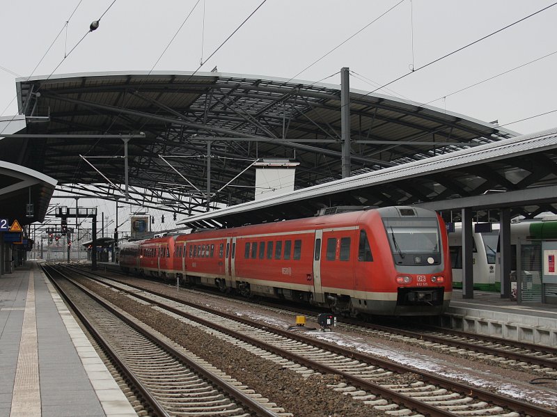 708 333 steht am 04.07.09 in Halle(S), fotografiert vom letzten Bahnsteig des Hbf Halle(S).