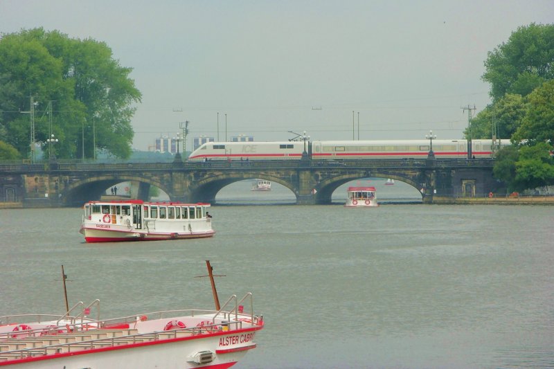 Der deutsche Verkehr scheint sich farblich auf weiß und rot zu beschränken;-) So gesehen bei einem Blick auf die Lombardsbrücke. 18.07.2009