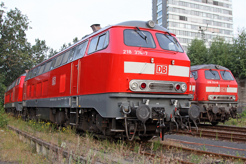 Die 218 374-7 und 218 321-8 abgestellt in Hamburg Klostertor am 03,07,09
