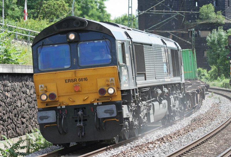 Die ERSR 6616 der ERS Railways zieht ihren gemischten Güterzug durch Erpel am 16.07.2009