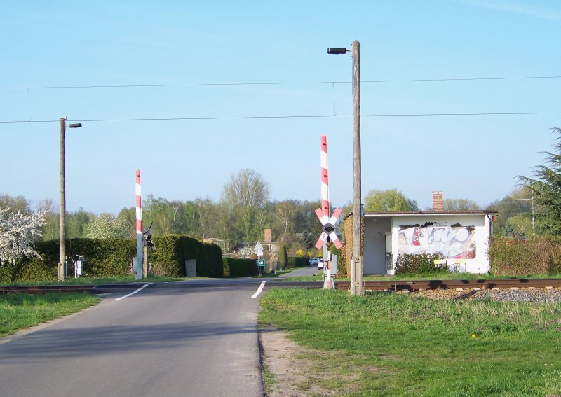 Dieser Bahnübergang , welcher sich zwischen Lübbenau und Raddusch befindet, scheint der einzige zu sein, welcher noch mit solchen alten Schranken bedient wird. Sonst scheinen ALLE diese Schranken weg zu kommen, auf der "neuen" Strecke zwischen Cottbus und Berlin!