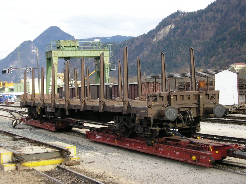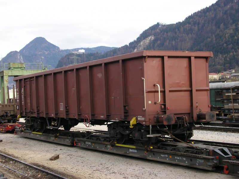 Spezielle Niederflurwagen für Normalspurwagon transport in Jenbach.27.02.2008