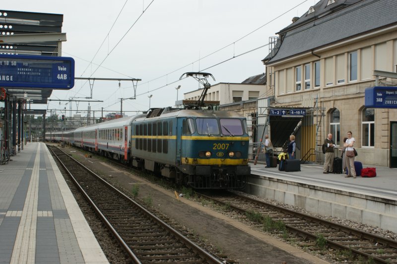 SNCB Baureihe 20 (2007) bringt den Eurocity nach Zürich in den Bahnhof Luxemburg ein. (Aufnahme am 22.07.2009)