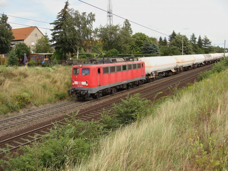 139 309-9 mit einem gemischten Güterzug in Richtung Braunschweig am Stadtrand von Magdeburg. Fotografiert am 30.07.2009.