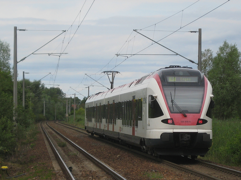 Die Prignitzer Eisenbahn am 29.07.2009 mit dem VT 650 bei der Ausfahrt aus dem Bahnhof Nassenheide auf der Linie RB 12 nach Berlin-Lichtenberg