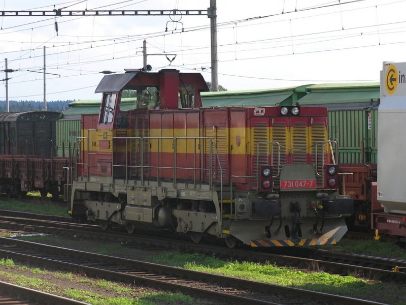 731 047-7 auf Bahnhof Zdice am 13-8-2005. Bild und scan: Date Jan de Vries.