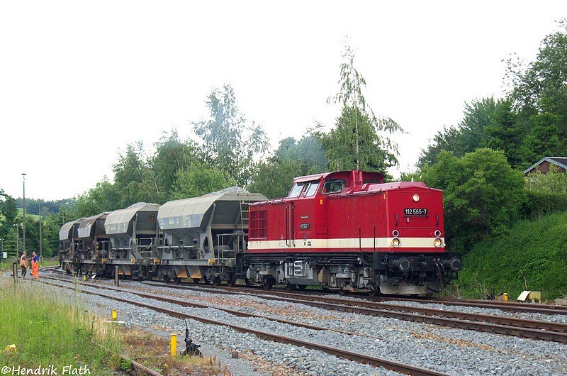 Am Abend des 08.06.2009 rollte 112 565 der PRESS mit ihrem Schotterzug auf ein Abstellgleis in Bahnhof Schlettau.
