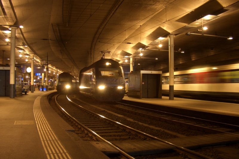 Während Re 460 071-4 "vetro swiss" noch am Fahrrichtung wechseln ist, steht Re 460 021-9 "Lokführer" schon mit ihrem IR nach Biel bereit.