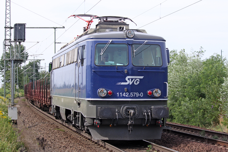 Da hab ich sie erwischt. Die 185 142-7 ist eine der 185er, die zwischen der Schweiz und Deutschland pendeln. Hier am 29.07.2009 in Erstfeld bei der Gotthard-Strecke.