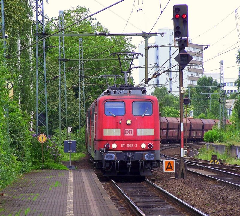 Hier noch ein Bild vom "5000er". 151 002-3 zieht gemeinsam mit einer Schwestermaschine den 5000 t schweren Kohlezug aus Venlo kommend in Richtung Süden. 28.07.09