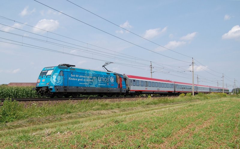 Am 30.07.2009 bespannte die DB 101 016 "Unicef" den Euronight 491 "Hans Albers" nach Wien Westbahnhof. Die Aufnahme entstand in Neulengbach.
