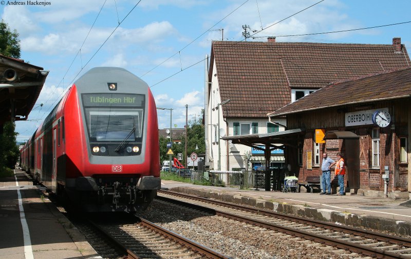 RE 22035 (Stuttgart Hbf-Tübingen Hbf) mit schublok 143 315-0 bei der Durchfahrt Oberboihingen 25.7.09