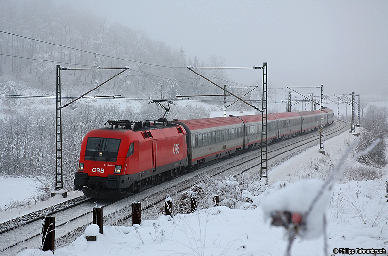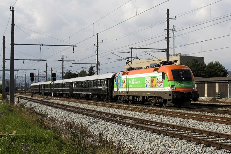 Leider auf dem "falschen" Gleis ist am 04.07.2009 die 1116 007 mit dem "Majestic Imperator" in Marchtrenk durchgefahren.