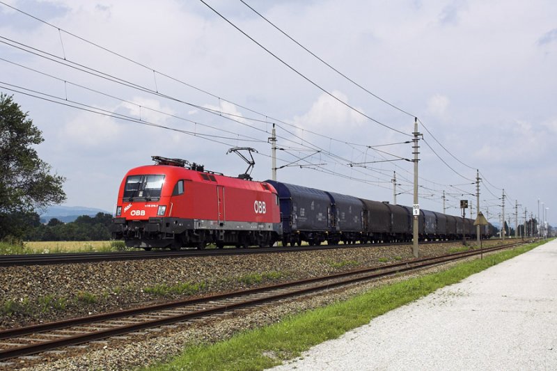 1116 275  Max  mit einem Güterzug bei Hörsching.