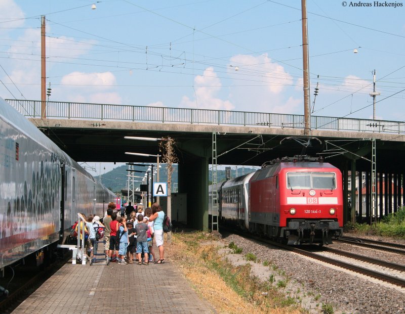 120 144-1 und 101 027-1 (Zugschluss) mit dem IC 2260 (München Hbf-Karlsruhe Hbf) bei der Durchfahrt Karlsruhe Durlach am 2.7.09