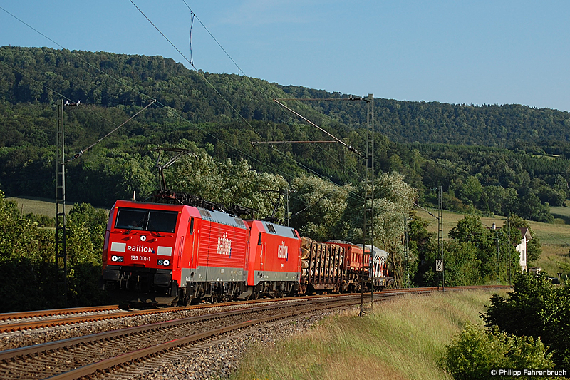 Teleschuss auf den R3972 gezogen von der 1016 023 am 04.07.2009 bei Wartberg/Kr.