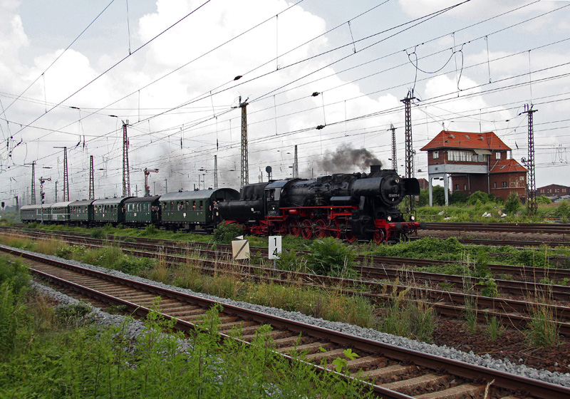 Am Nachmittag des 04.07.2009 passiert 52 8177-9 das Stellwerk Hp4 und erreicht in wenigen Augenblicken Halle(Saale)-Hbf. Alle Einnahmen dieser Sonderfahrt gehen auf das Konto von 03 1010, Danke nach Berlin!