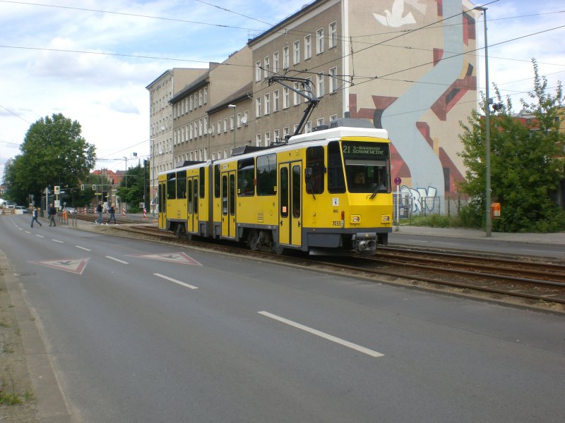 Berlin: Straßenbahnlinie 21 nach S-Bahnhof Schöneweide am S-Bahnhof Rummelsburg.