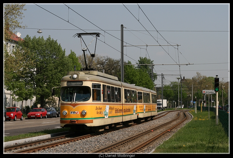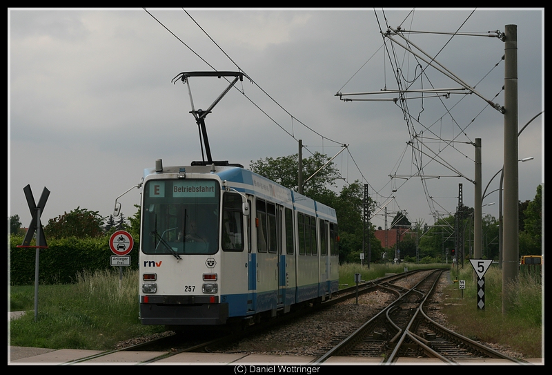 Der M8C 3257 auf dem Richtungsgleis in Richtung Heidelberg im Bf Edingen, 14. Mai 2009