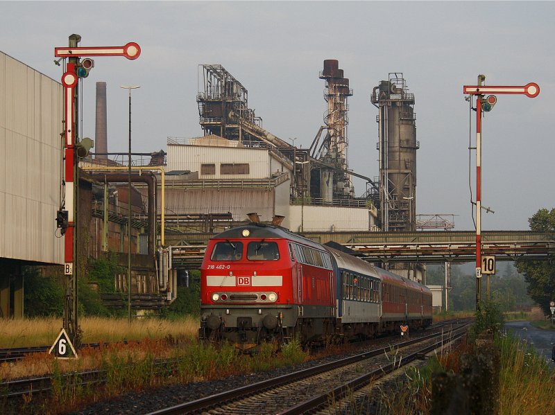 Die 218 462 mit dem RE Jan Hus am 27.06.2009 bei der Durchfahrt in Sulzbach-Rosenberg Hütte.