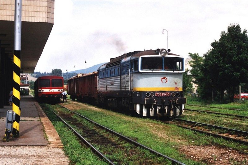 750 058-0 mit Os 9109 Pre¨ov-Humenné auf Bahnhof Kapu¨any pri Pre¨ove am 3-8-05. Bild und scan: Date Jan de Vries
